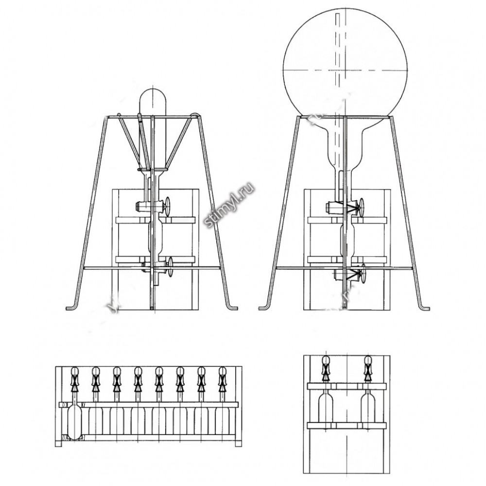 Аппарат СВ-7631М предназначен для определения содержания кислорода в чистом азоте и аргоне колориметрическим методом. Метод основан на окислении меди (одновалентной в двухвалентную) кислородом анализируемого газа.При этом бесцветный раствор медно-аммиачного комплекса одновалентной меди окрашивается в синий цвет, характерный для медно-аммиачного комплекса двухвалентной меди.Окрашенный раствор сравнивается с эталонными растворами сульфата меди разных концентраций в водном четырехпроцентном растворе аммиака. Применяется в химической промышленности.Состоит из газоанализатора и соединенной с ним колбы, установленных на подставке, а также набора эталонов.В состав прибора входит шесть газоанализаторов. Каждый газоанализатор вымеряется на истинную вместимость, которая проставляется на его поверхности.