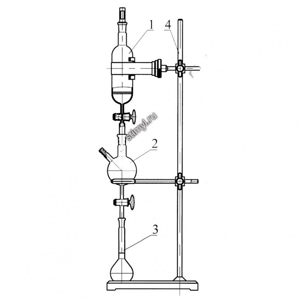 Детали прибора устанавливаются на штативе с помощью держателей.Возможна поставка комплекта стеклоизделий без штатива.