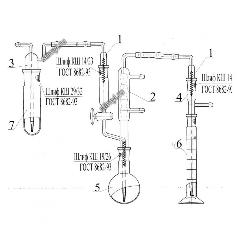 - детали установки соединяются между собой с помощью шлифов конических взаимозаменяемых по ГОСТ 8682-93 и закрепляются пружинками